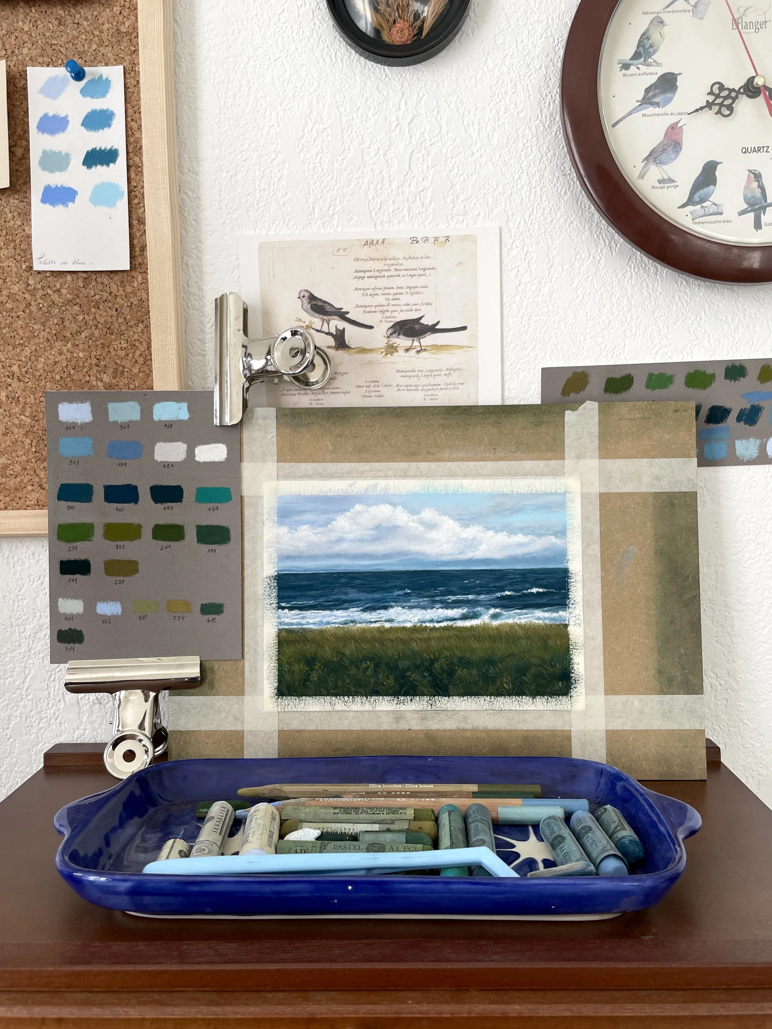 ✩ Chaque paysage est réalisé aux pastels tendres sur un papier blanc de la marque ClaireFontaine et de la gamme Pastelmat (360 m/g).